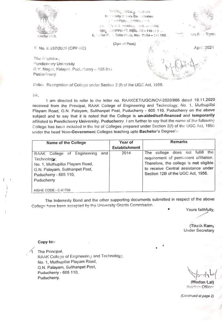 PONDICHERRY UNIVERSITY AFFILIATION